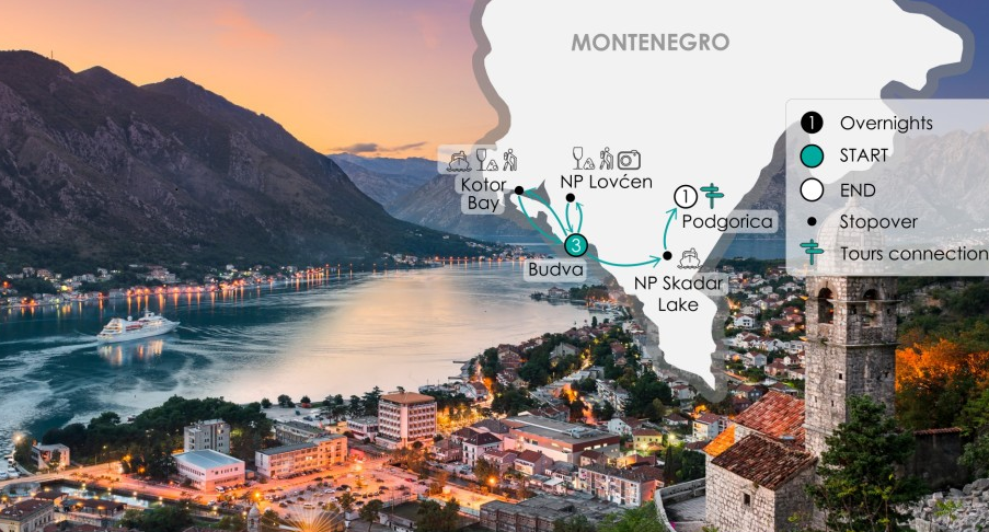 Kotor, Badva, Lovcen, Skadar Lake, Podgorica